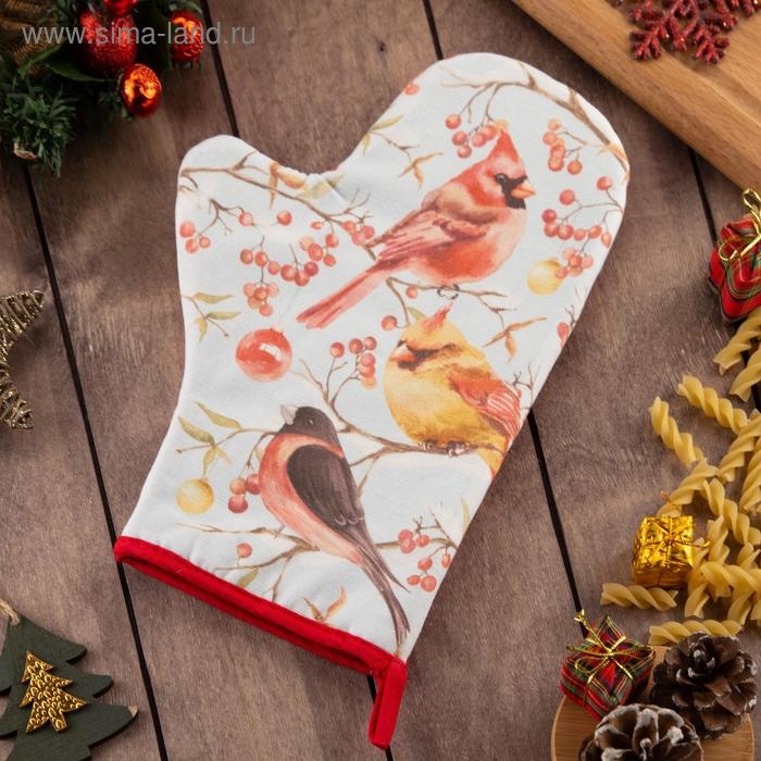 Новый год. Варежка-прихватка "Winter birds" 20х28см, саржа, 100% хлопок, ватин 250г/м2