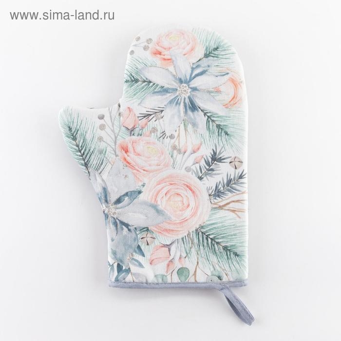 Новый год. Варежка-прихватка "Christmas flowers" 20х27см, саржа, 100% хлопок, ватин 250г/м2