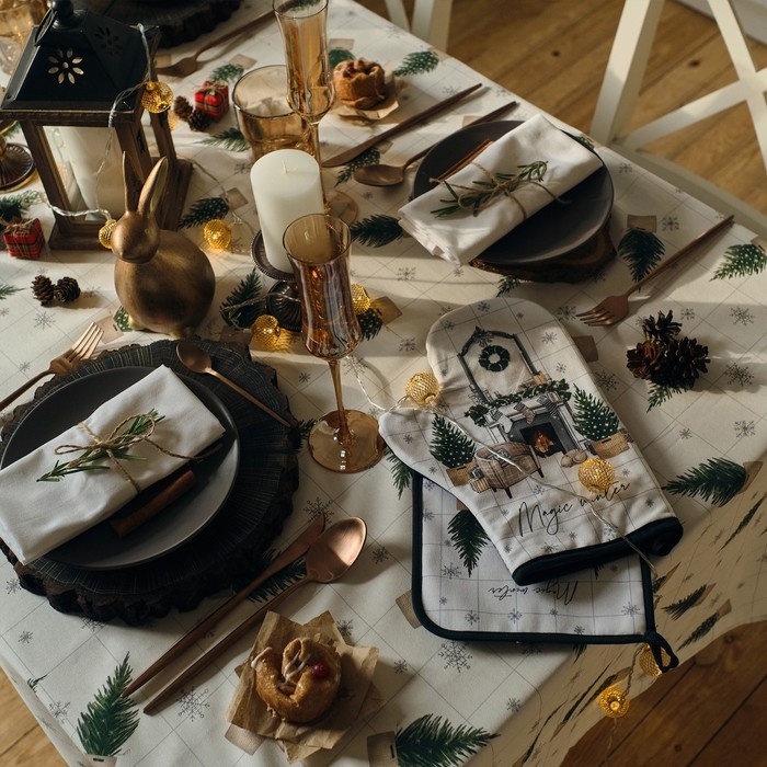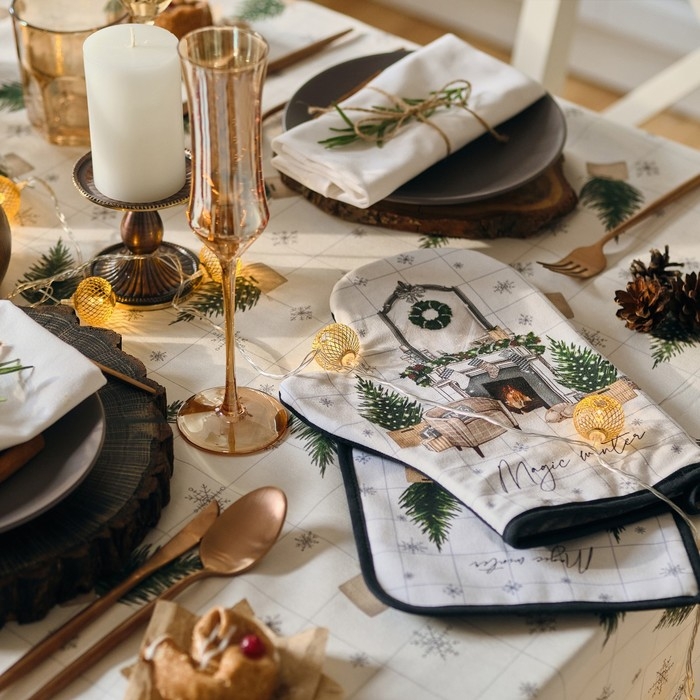 Новый год. Варежка-прихватка Magic winter 20х28см, саржа, 100% х/л, ватин 250г/м2