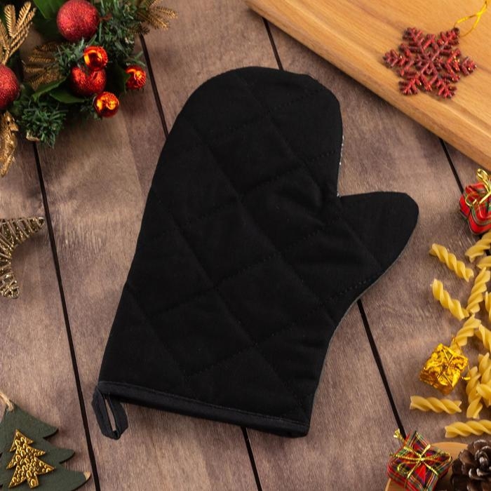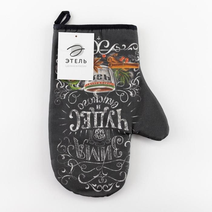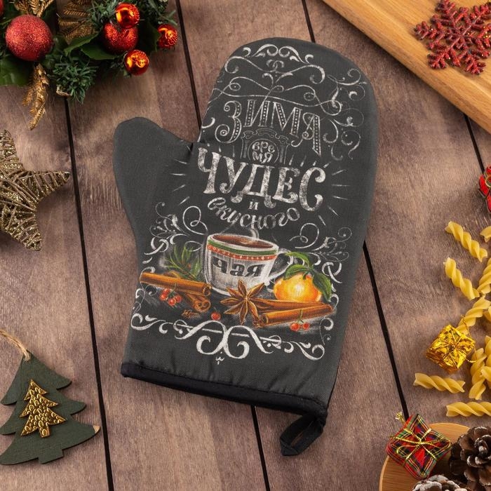 Новый год. Варежка-прихватка «Зима время чудес» 20х28см, саржа, 100% х/л, ватин 250г/м2