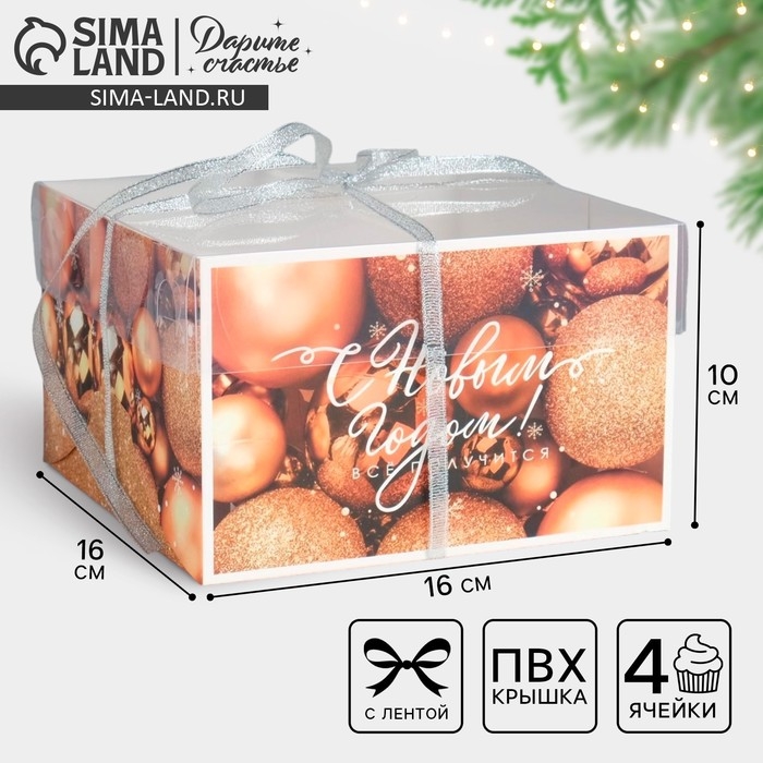 Коробка для капкейка «Все получится», 16 х 16 х 10 см, Новый год