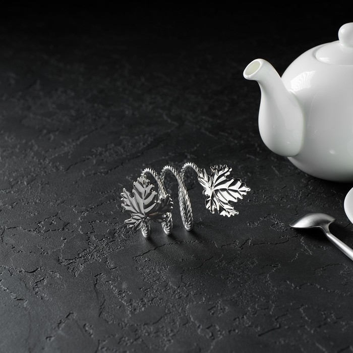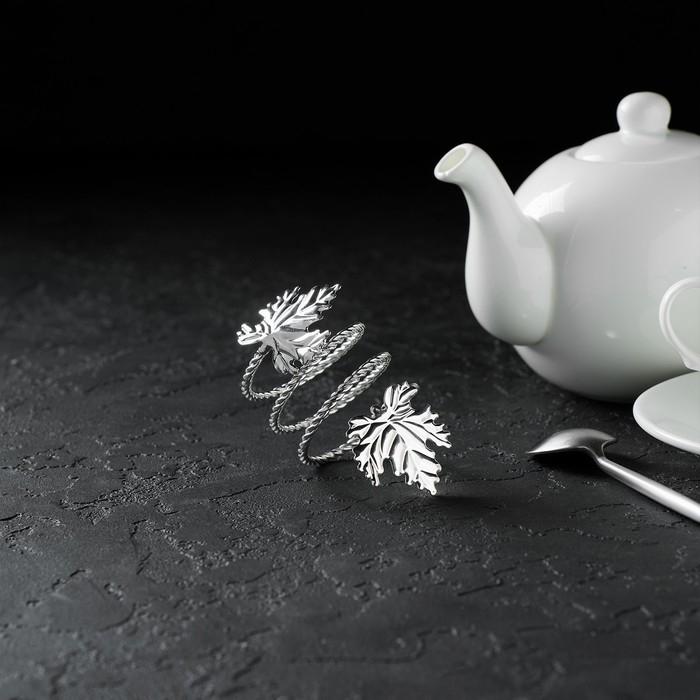 Кольцо для салфетки «Лист», 10×4,5 см, цвет серебряный