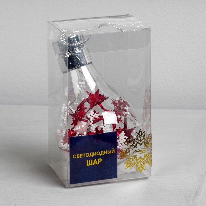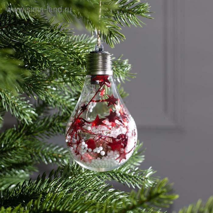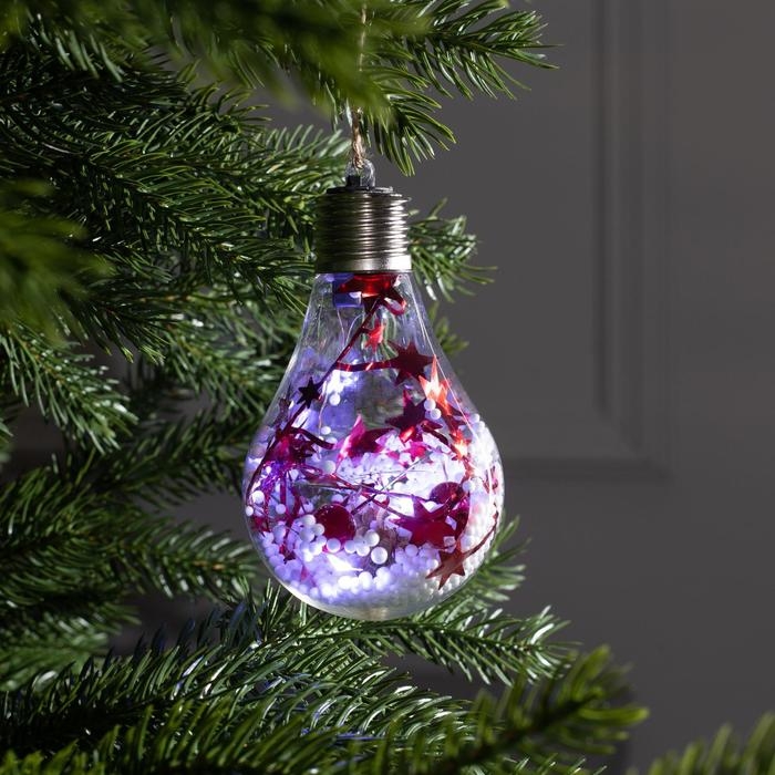 Ёлочный шар «Шишки с красной мишурой», батарейки, 5 LED, свечение белое