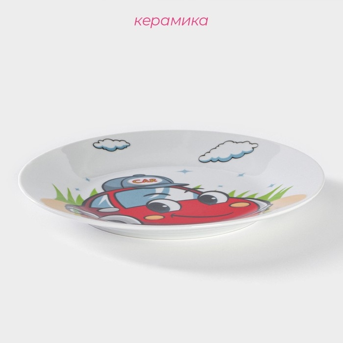 Тарелка керамическая Доляна «Машинка», d=17,5 см, цвет белый