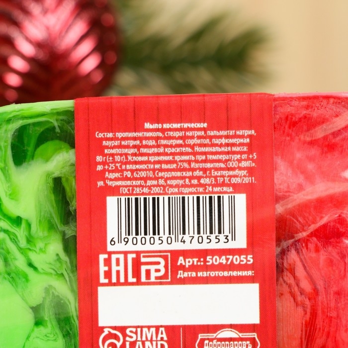 Мыло СПА - уход для бани и сауны "С Новым годом" яблоко, Добропаровъ 80 гр