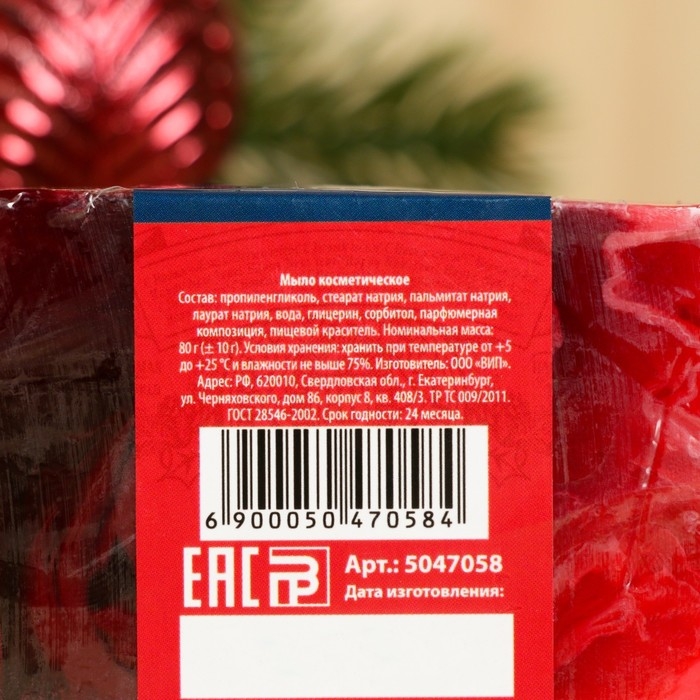 Мыло СПА - уход для бани и сауны "С Новым годом" брусника, Банная забава 80 гр