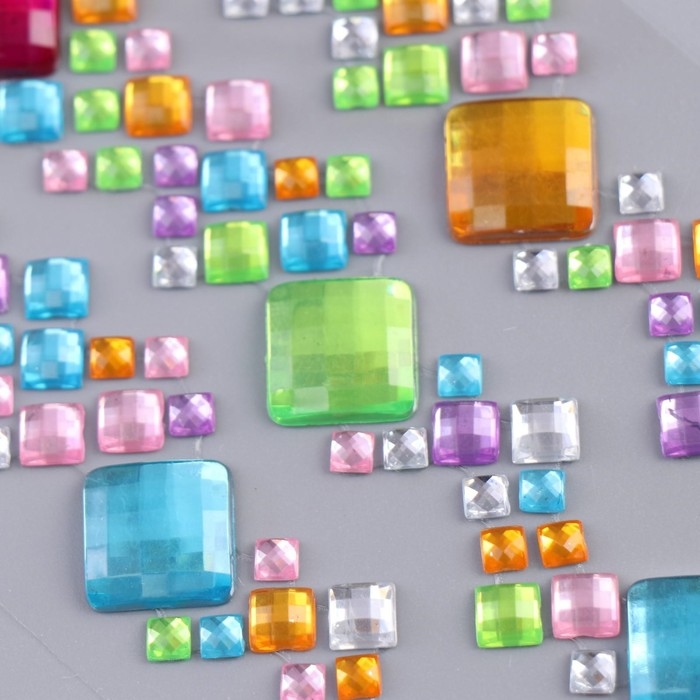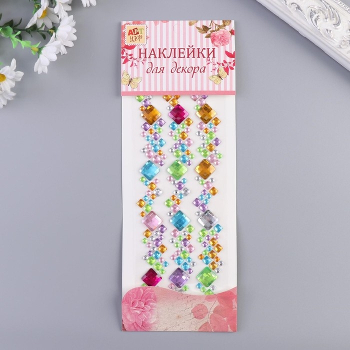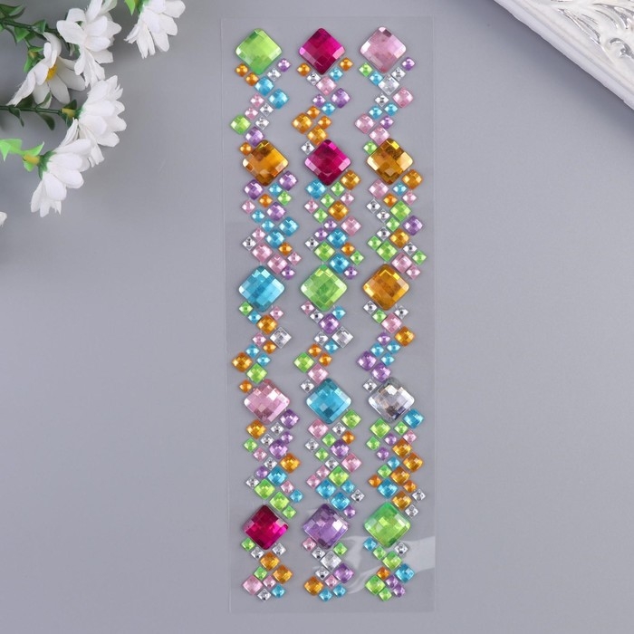 Наклейка пластик стразы "Разноцветные квадратики" МИКС 27,5х10 см