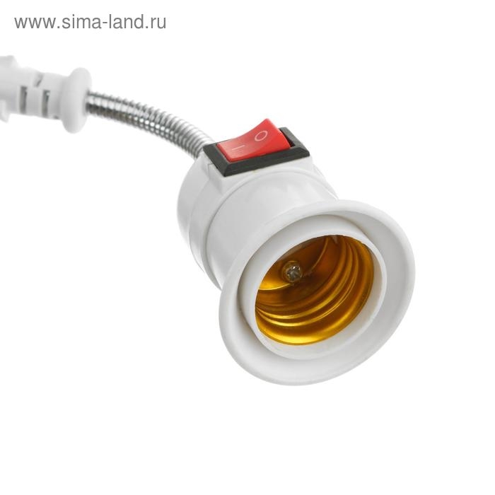 Переходник вилка-патрон, E27, гибкий 100 мм c выключателем, белый
