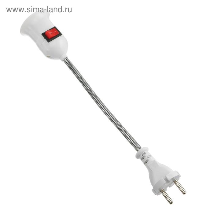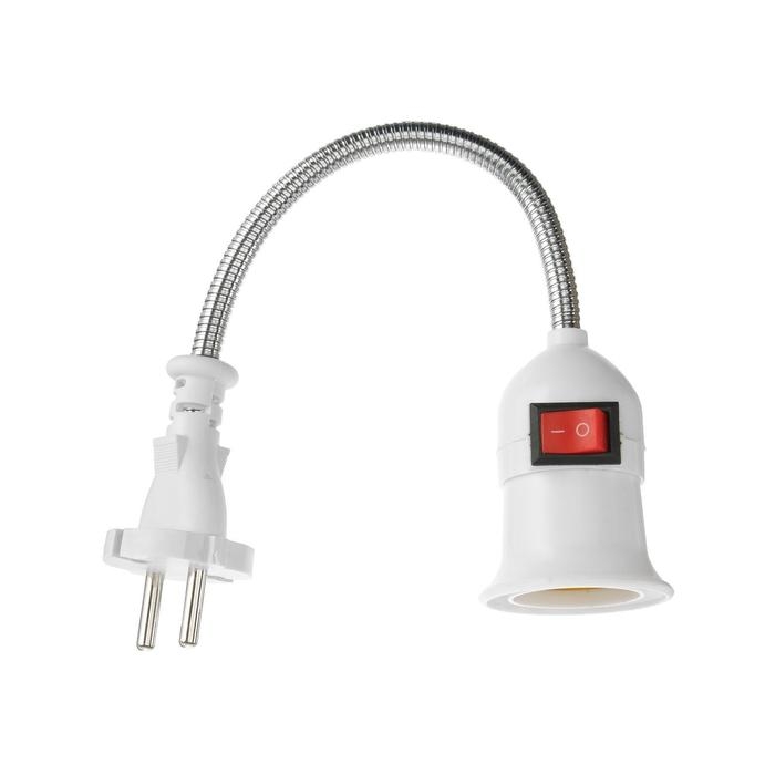 Переходник вилка-патрон, E27, гибкий 200 мм c выключателем, белый