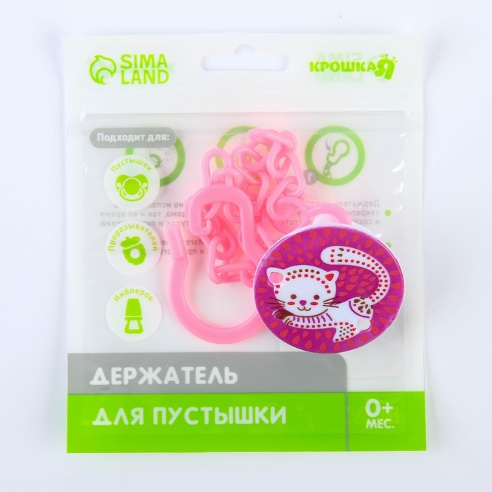 Держатель для соски - пустышки «Кошечка», на цепочке, цвет розовый