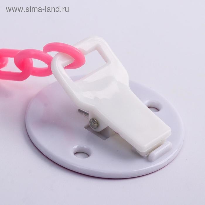 Изделие фиксируется на одежде ребёнка. На конце цепочки есть карабин, который зацепляется за кольцо пустышки. Надёжное крепление убережёт вещь от падения на пол, если малютка случайно выронит её изо рта.