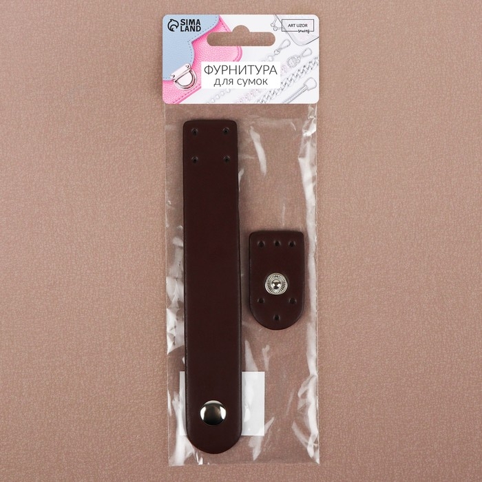 Застёжка пришивная для сумки, на кнопке, 15,5 × 2,5 см / 4,5 × 2,5 см, цвет коричневый/серебряный