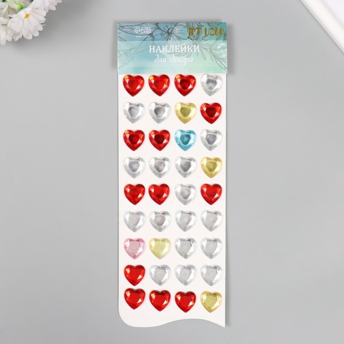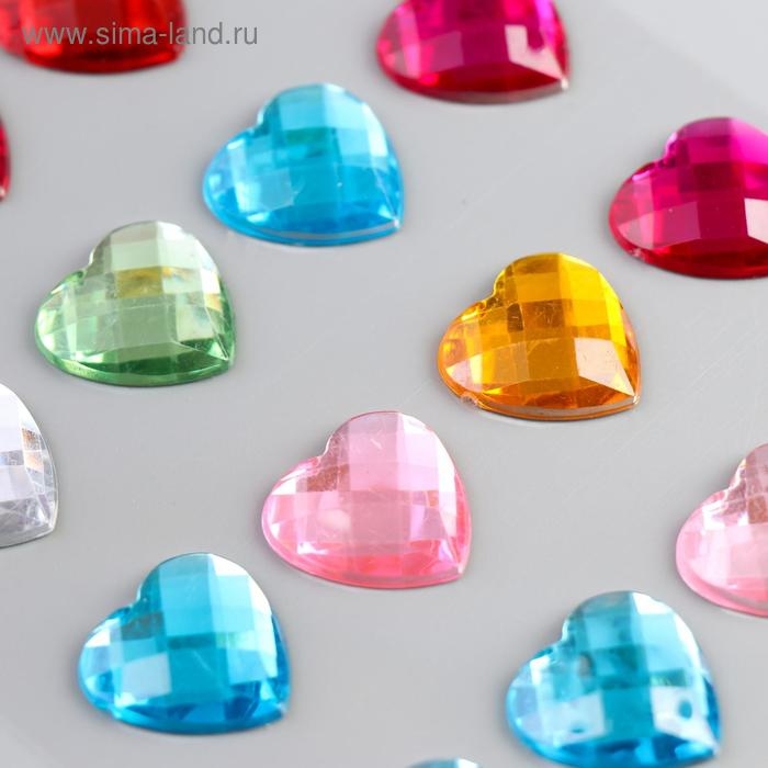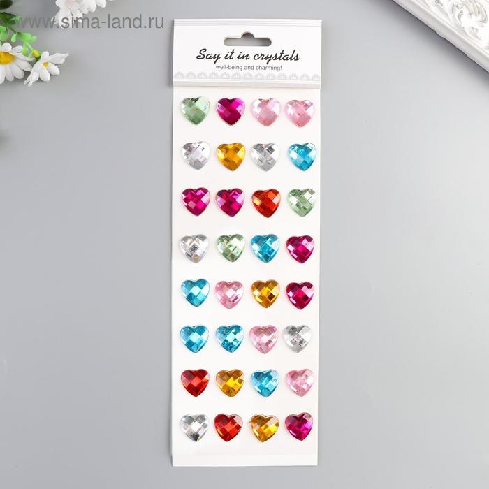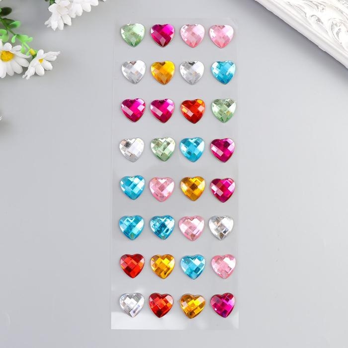 Наклейка пластик стразы "Сердечки разноцветные кристаллы" МИКС 32х10,5 см