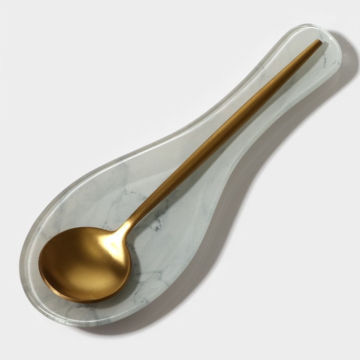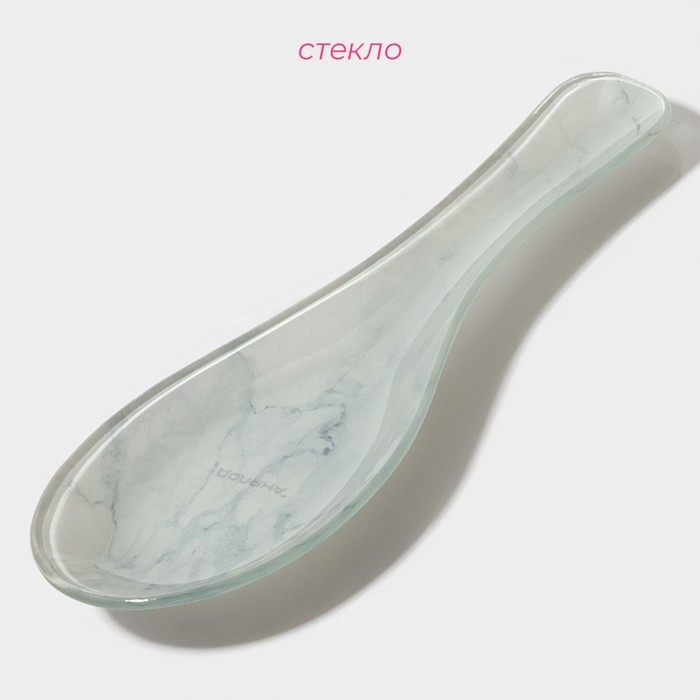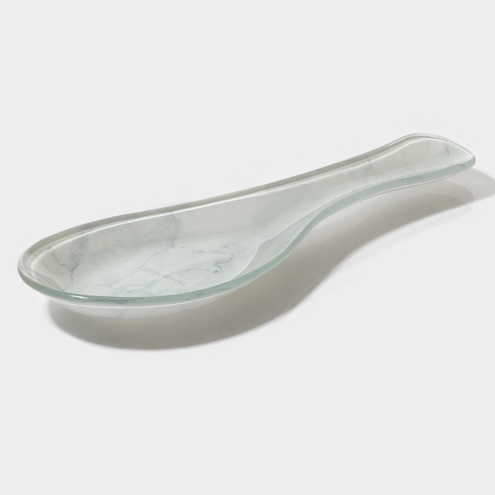 Подставка стеклянная под ложку Доляна «Марбл белый», 23,5×8,3×1,5 см
