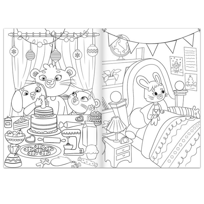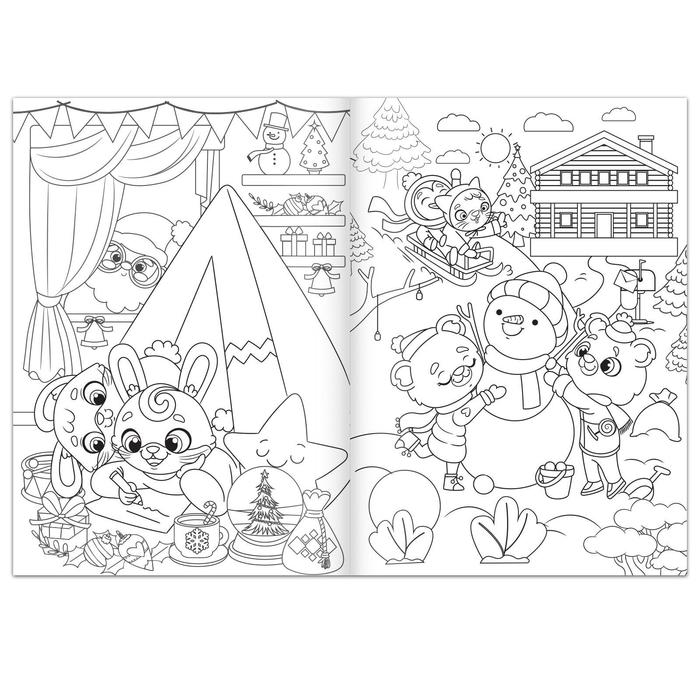 Раскраска «Новый год у зверят», 16 стр., формат А4