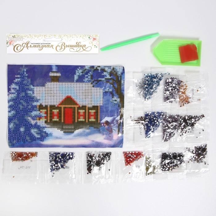 Алмазная мозаика на новый год с частичным заполнением на холсте «Зимушка», 15 х 21 см, новогодний набор для творчества