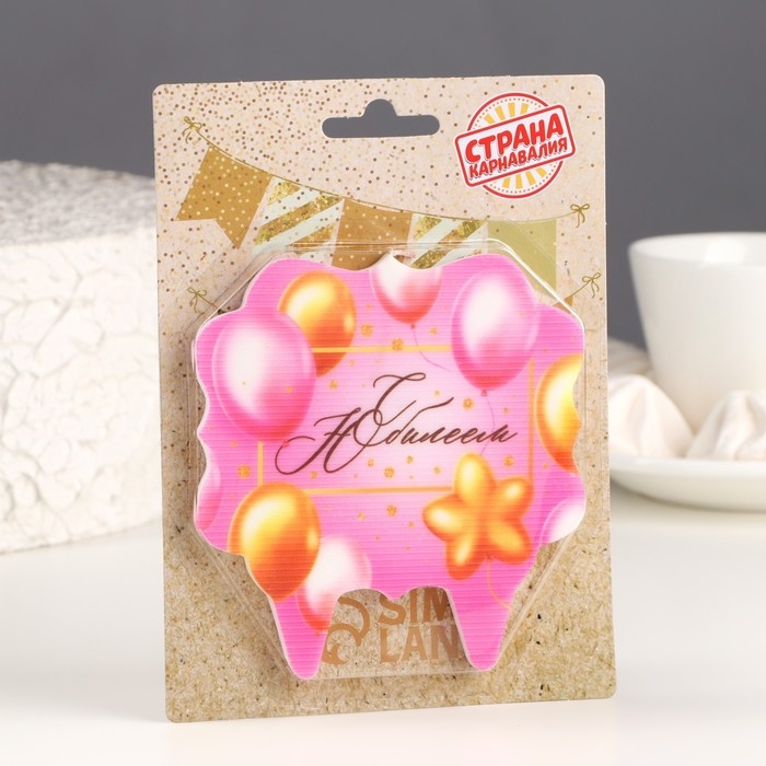 Свеча для торта «С Юбилеем. Шарики», розовая, 8 см