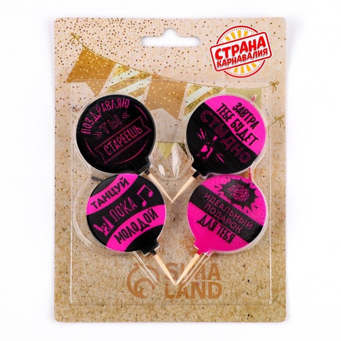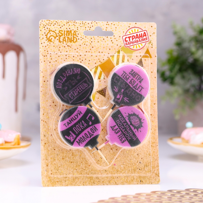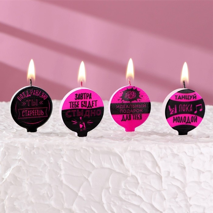 Набор свечей 4 штук "С юмором", розово-чёрные, 4 см