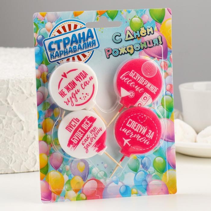 Набор свечей 4 штук "С юмором", розово-белые, 4×4.4 см