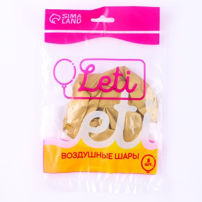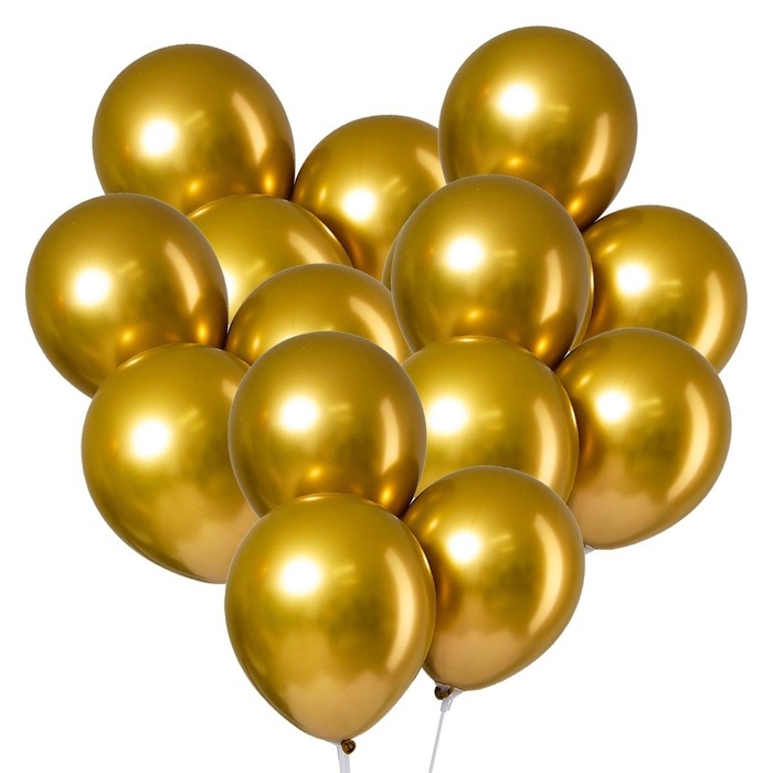 Шар латексный 12" «Хром», металл, набор 5 шт., цвет золотой