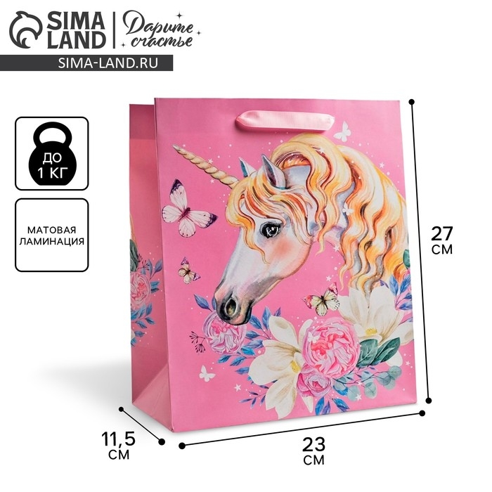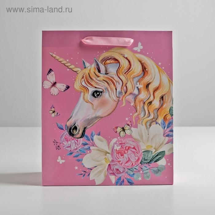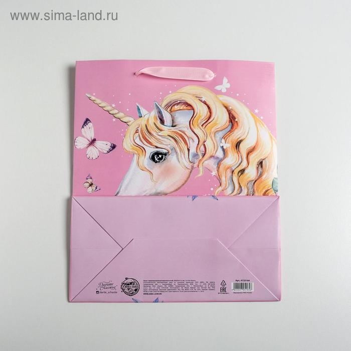 Пакет подарочный ламинированный вертикальный, упаковка, «Единорог», ML 23 х 27 х 11,5 см