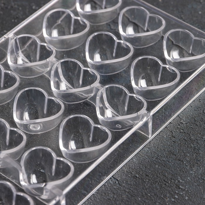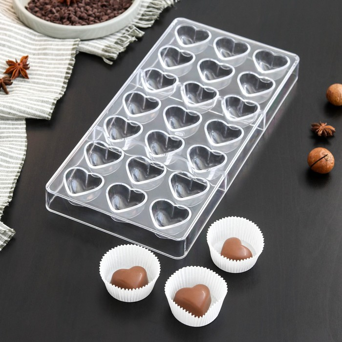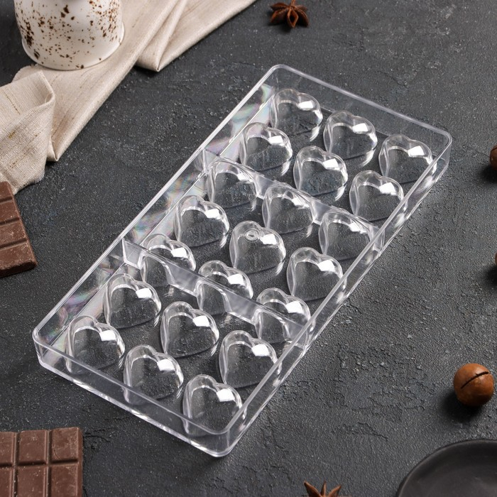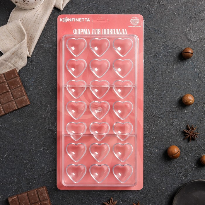 Форма для конфет и шоколада KONFINETTA «Сердца», 27,5×13,5 см, 21 ячейка 2×3 см, цвет прозрачный