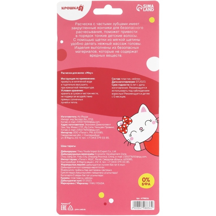 Мягкая пушистая щетка имеет удобную эргономичную ручку, улучшает кровообращение кожи головы, не царапая её. Нежный массаж расслабляет и успокаивает перед сном, а стимуляция волосяных луковиц ускоряет рост первых волос малыша. Щетка с мягким ворсом позволит пригладить волосики и придать им аккуратный вид. А с помощью расчески с частыми закругленными зубчиками удобно расчесывать запутавшиеся и скатавшиеся волосы.