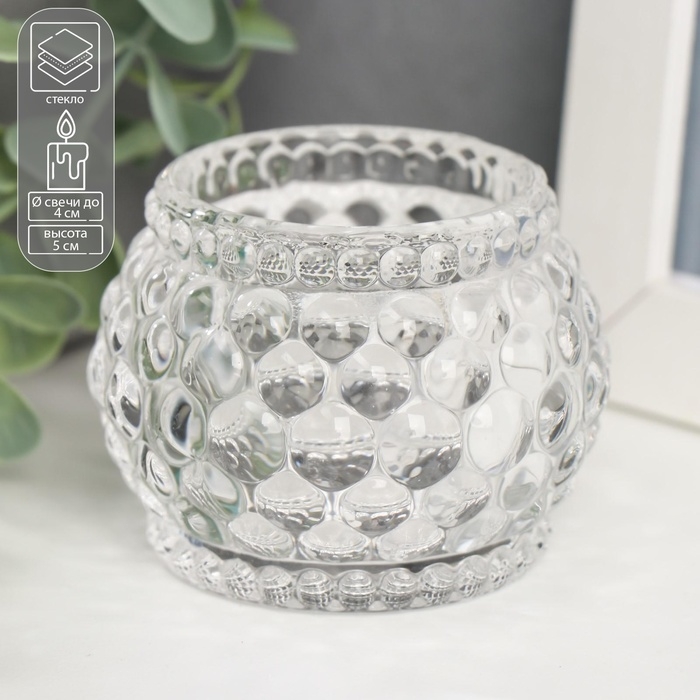 Подсвечник стекло на 1 свечу "Пузырьки на шаре" прозрачный 5х6х6 см