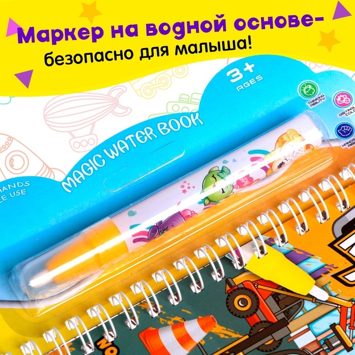 Книжка для рисования водой «Транспорт», с маркером