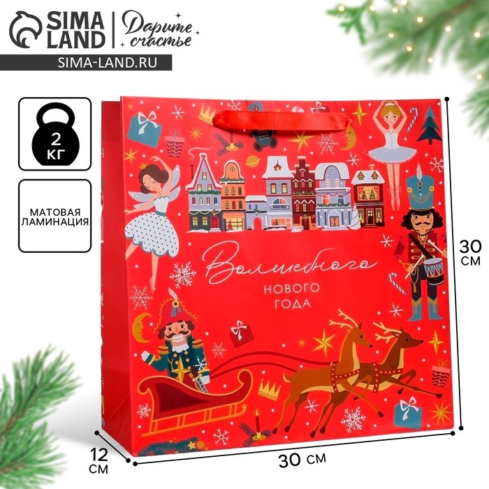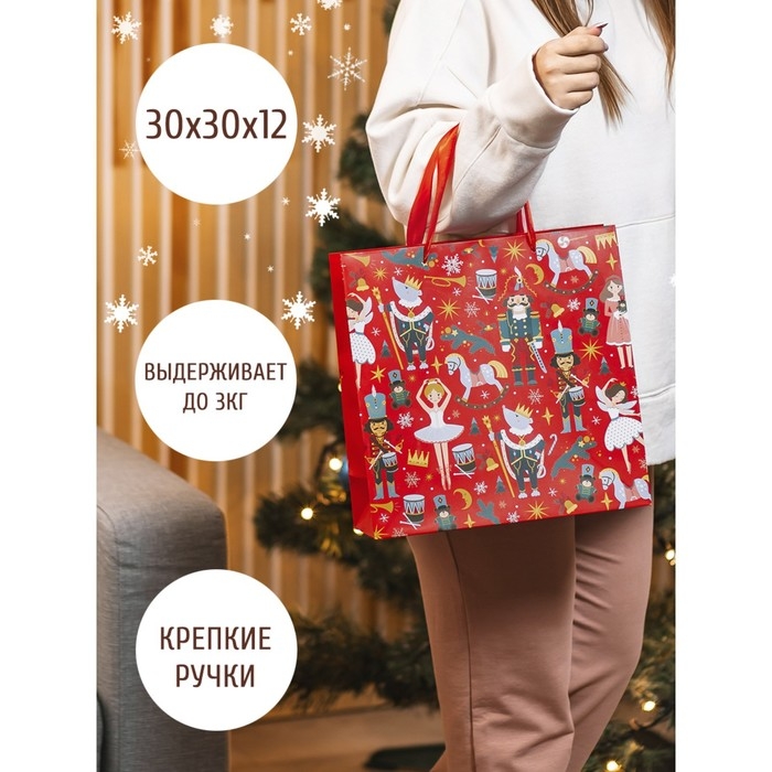 Пакет подарочный новогодний ламинированный квадратный «Щелкунчик», 30 х 30 х 12 см, Новый год