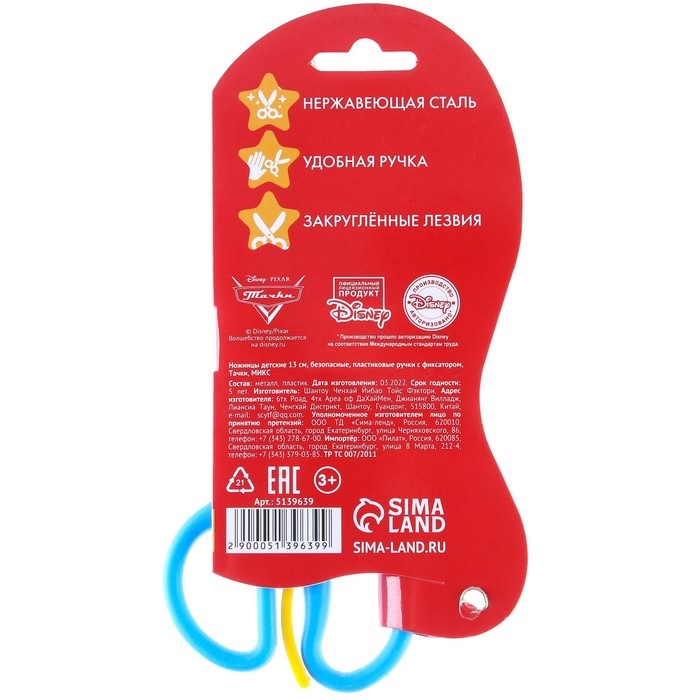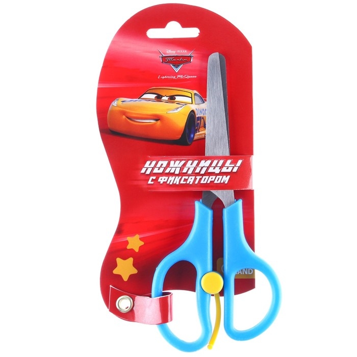 Ножницы детские 13 см, безопасные, пластиковые ручки с фиксатором, Тачки, МИКС