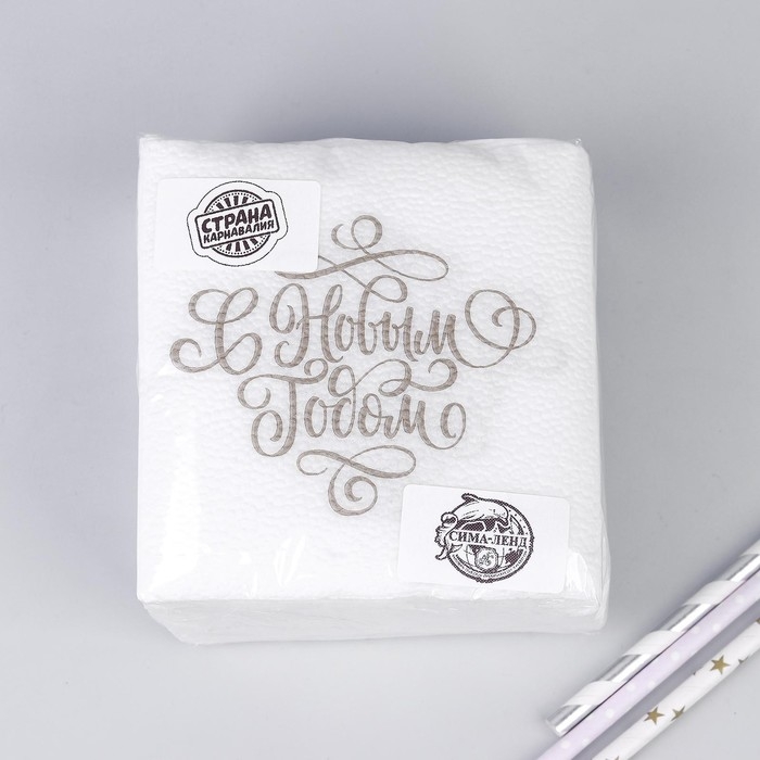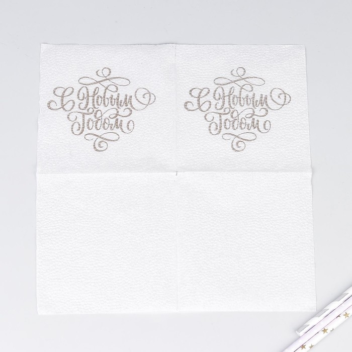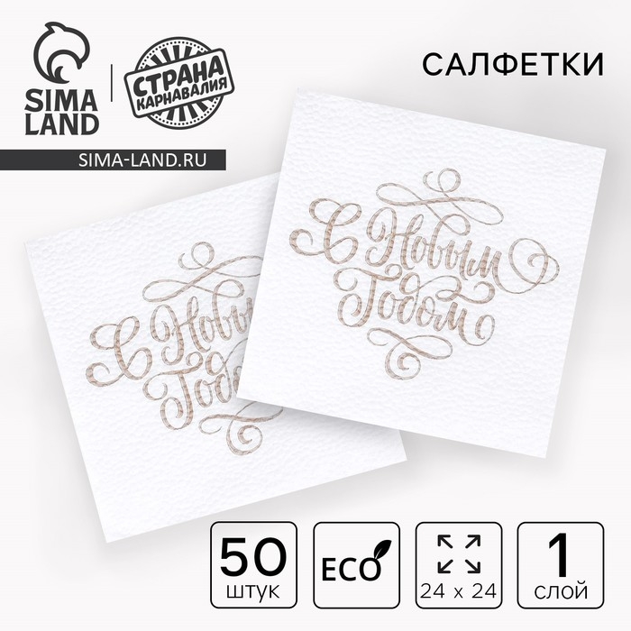 Новогодние салфетки бумажные «С Новым Годом»,золотые буквы, однослойные, 24х24 см, 50 шт.