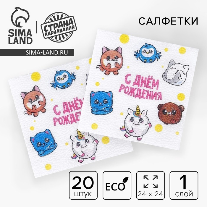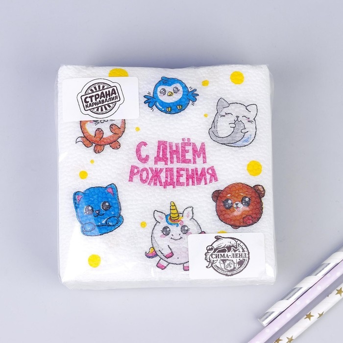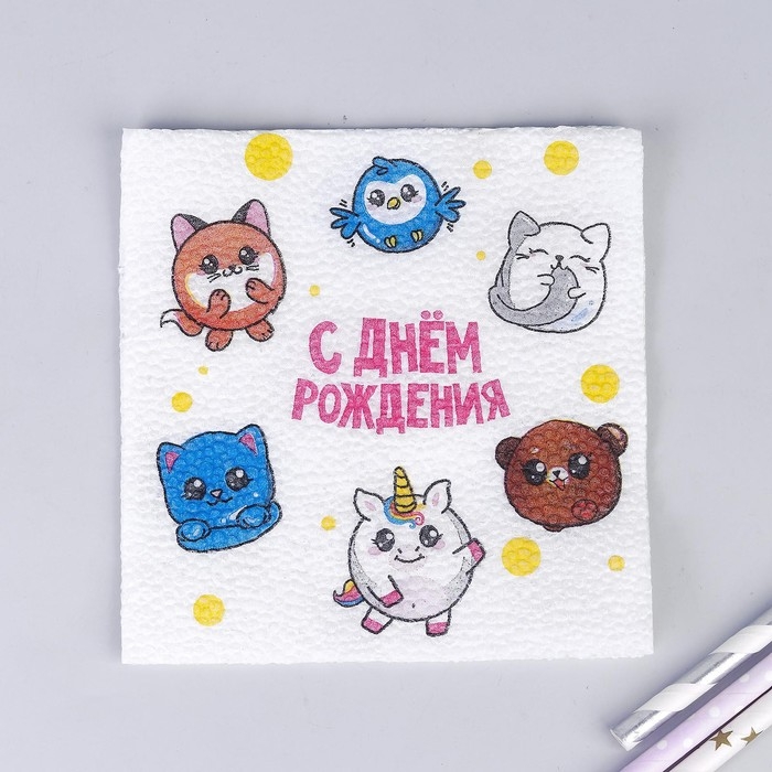 Салфетки бумажные «С днём рождения», сказочные звери, однослойные, 24х24 см, набор 20 шт.