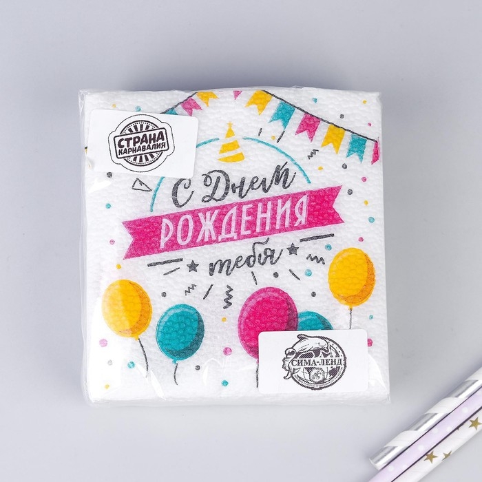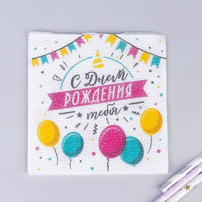 Салфетки бумажные «С днём рождения тебя», однослойные, 24х24 см, набор 20 шт.