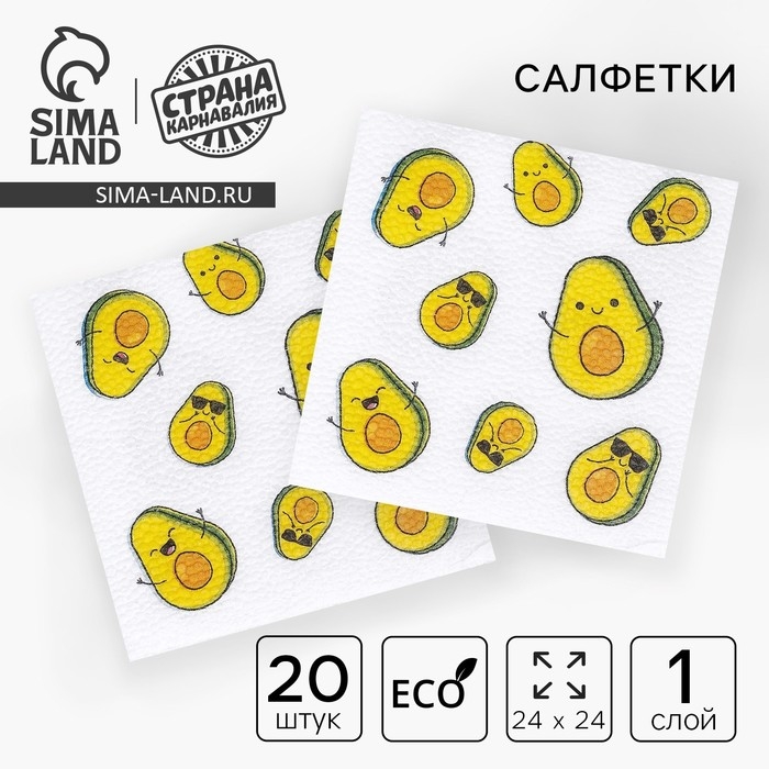 Салфетки бумажные «Авокадо», однослойные, 24х24 см, набор 20 шт.