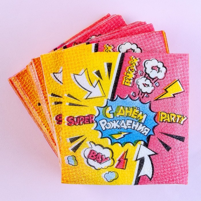 Салфетки бумажные «С днём рождения», super party, однослойные, 24х24 см, набор 50 шт.