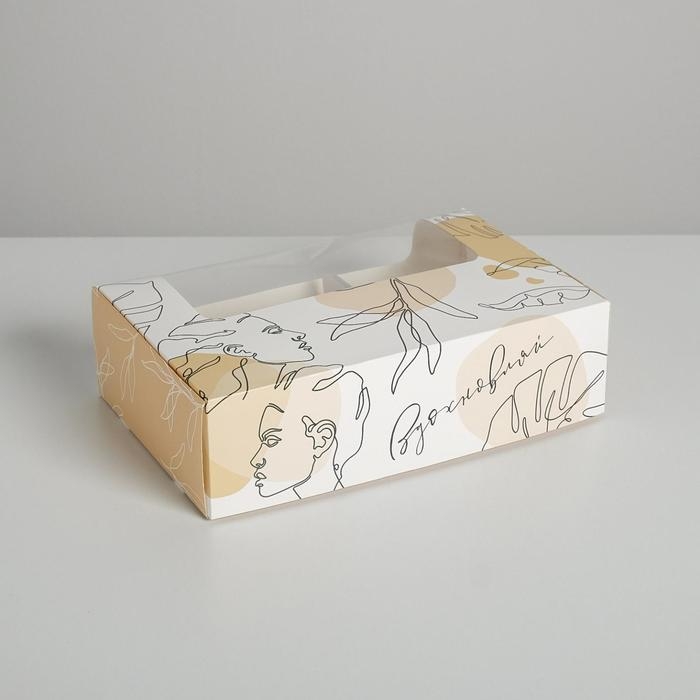 Коробка картонная с прозрачной крышкой, крафт, 26 х 21 х 3 см