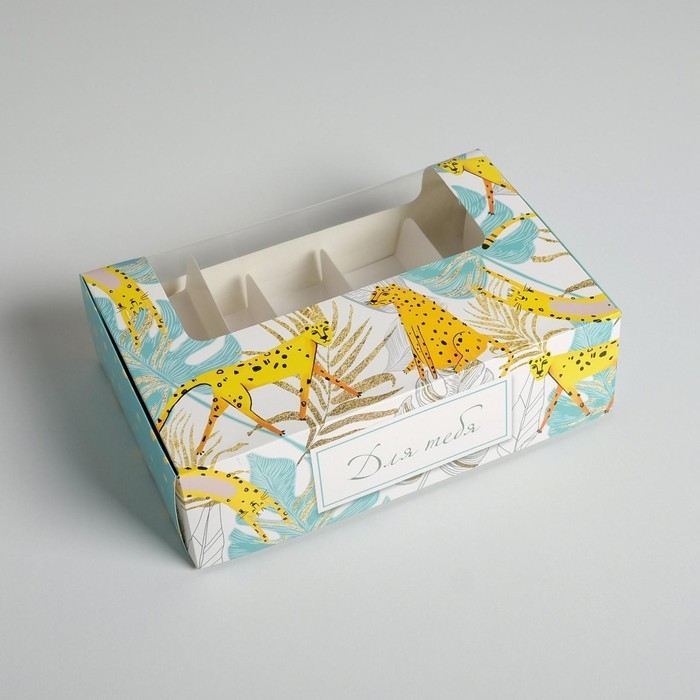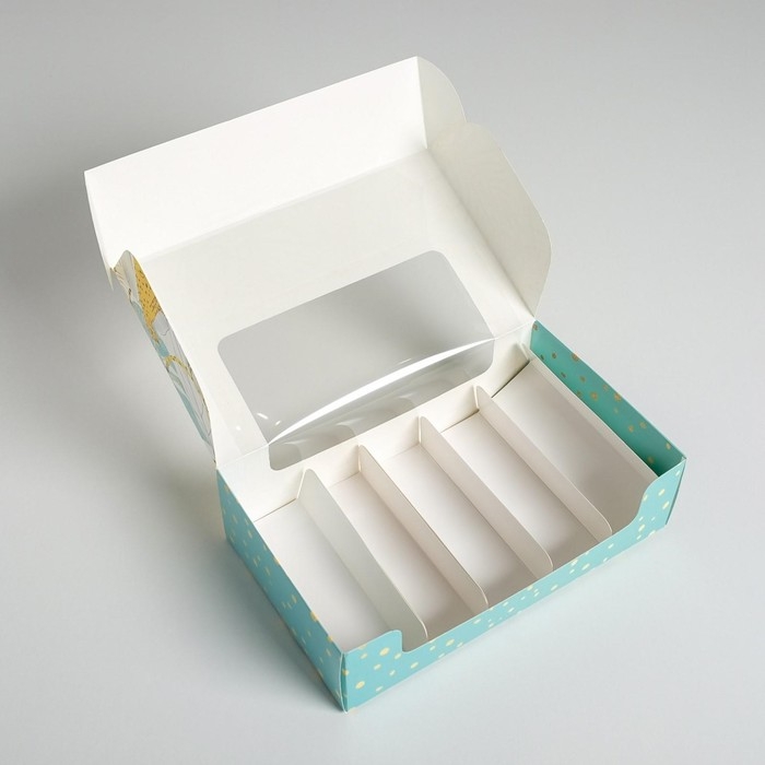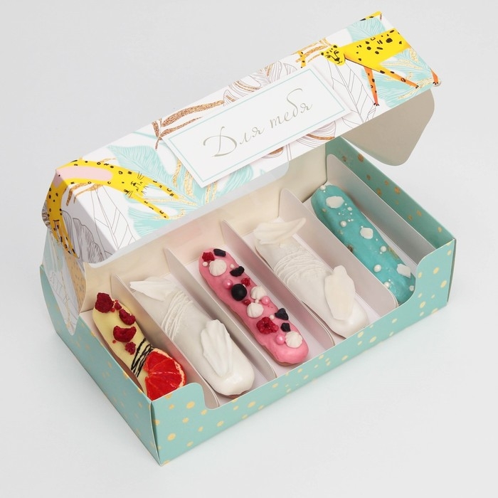 Коробка для эклеров, кондитерская упаковка, 5 вкладышей, «Для тебя», 25.2 х 15 х 7 см