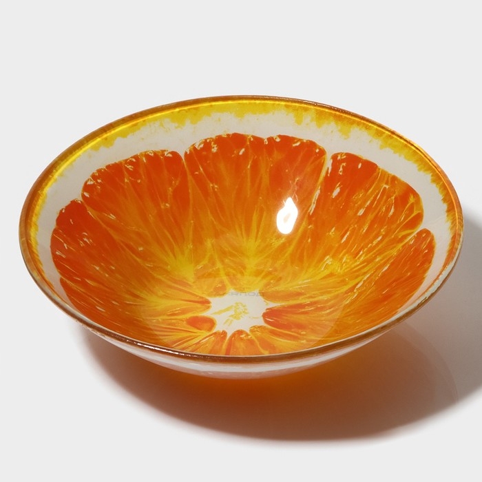 Салатник стеклянный Доляна «Сочный апельсин», 720 мл, 18,4×5 cм, цвет оранжевый