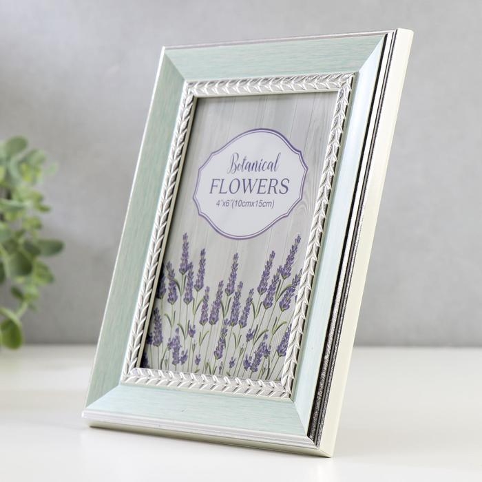 Фоторамка пластик 10х15 см "Нежно-голубая с серебристой косичкой" 19,5х14,5 см