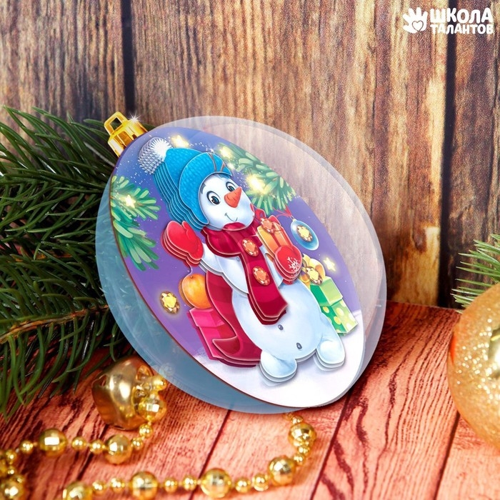 Ёлочный шар своими руками на новый год «Аппликация. Снеговичок», новогодний набор для творчества
