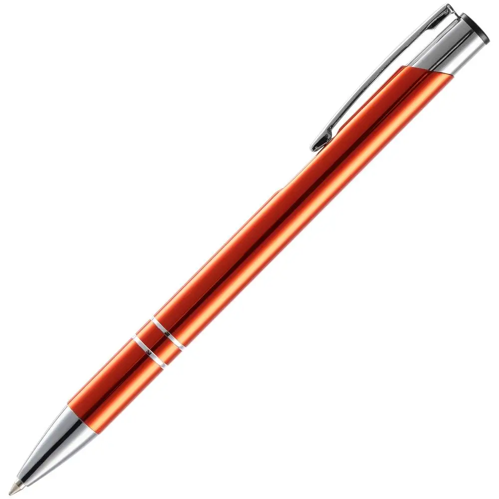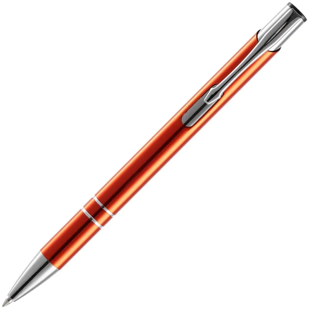 Яркая шариковая ручка с глянцевым цветным корпусом и хромированными деталями.