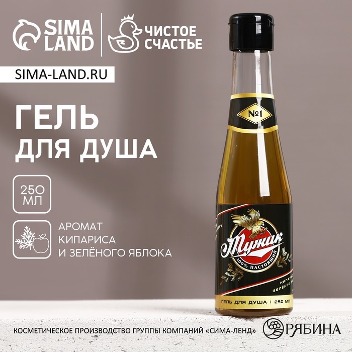 Гель для душа во флаконе пиво «Настоящий, 100% мужик», 250 мл, аромат кипариса и зелёного яблока, Новый Год