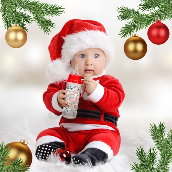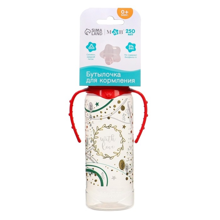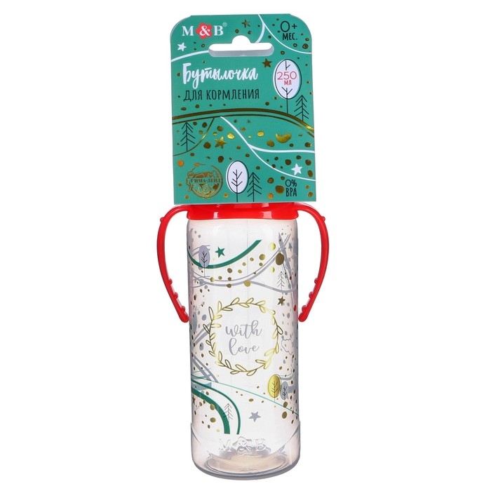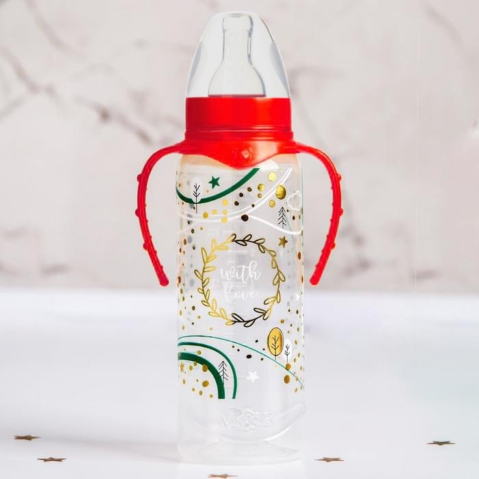 Бутылочка для кормления «Новогодний подарок», классическое горло, 250 мл., от 3 мес., цилиндр, подарочная упаковка, с ручками