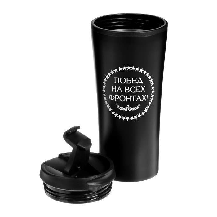 Термокружка "Побед на всех фронтах" - это отличное решение на каждый день для любителей чая и кофе. Термокружка подходит для использования в разных обстоятельствах: в офисе, идеальна для походов, длительных прогулок с ребенком или мини путешествий на природу. Многие используют её как инвентарь для отдыха, походов и туризма. Термокружку можно взять с собой на пикник, а также её можно взять с собой в поездки на дачу или на работу, чтобы напитки не остывали по дороге.