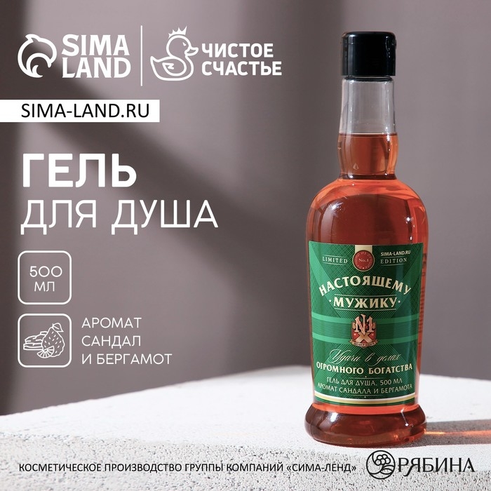 Гель для душа во флаконе коньяка «Настоящему мужику», 500 мл, аромат сандала и бергамота, Новый Год