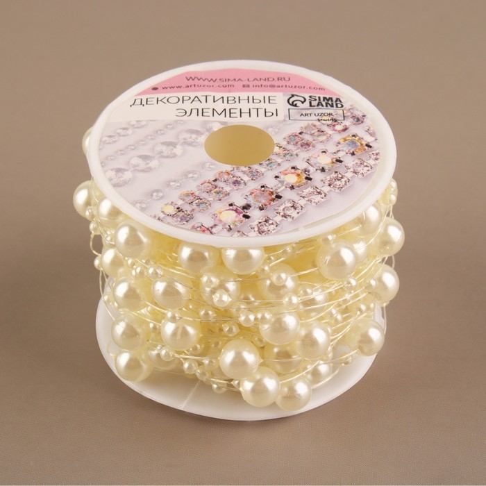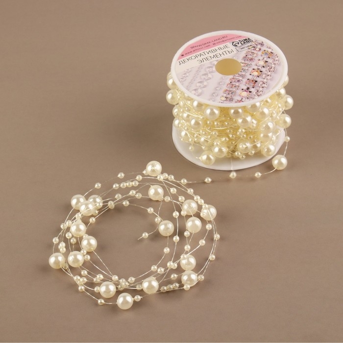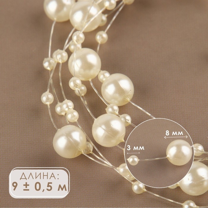 Жемчуг на леске, 3/8 мм, 9 ± 0,5 м, цвет молочный