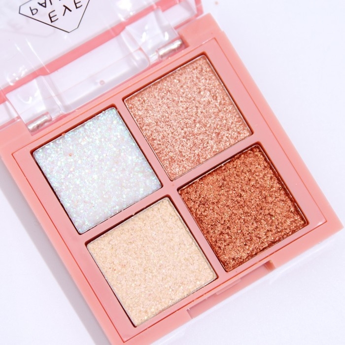 Палетка теней имеет удобную форму и хороший выбор блестящих цветов, созданный по корейским технологиям. Тени хорошо пигментированы, не пылят, не скатываются, отлично тушуются и наносятся на веки.