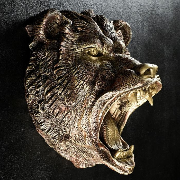Подвесной декор "Голова медведя" бронза, 24х35х42см