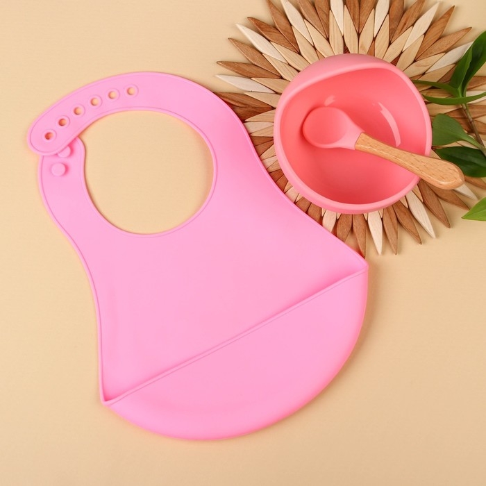 Нагрудник для кормления силиконовый с карманом, цвет розовый